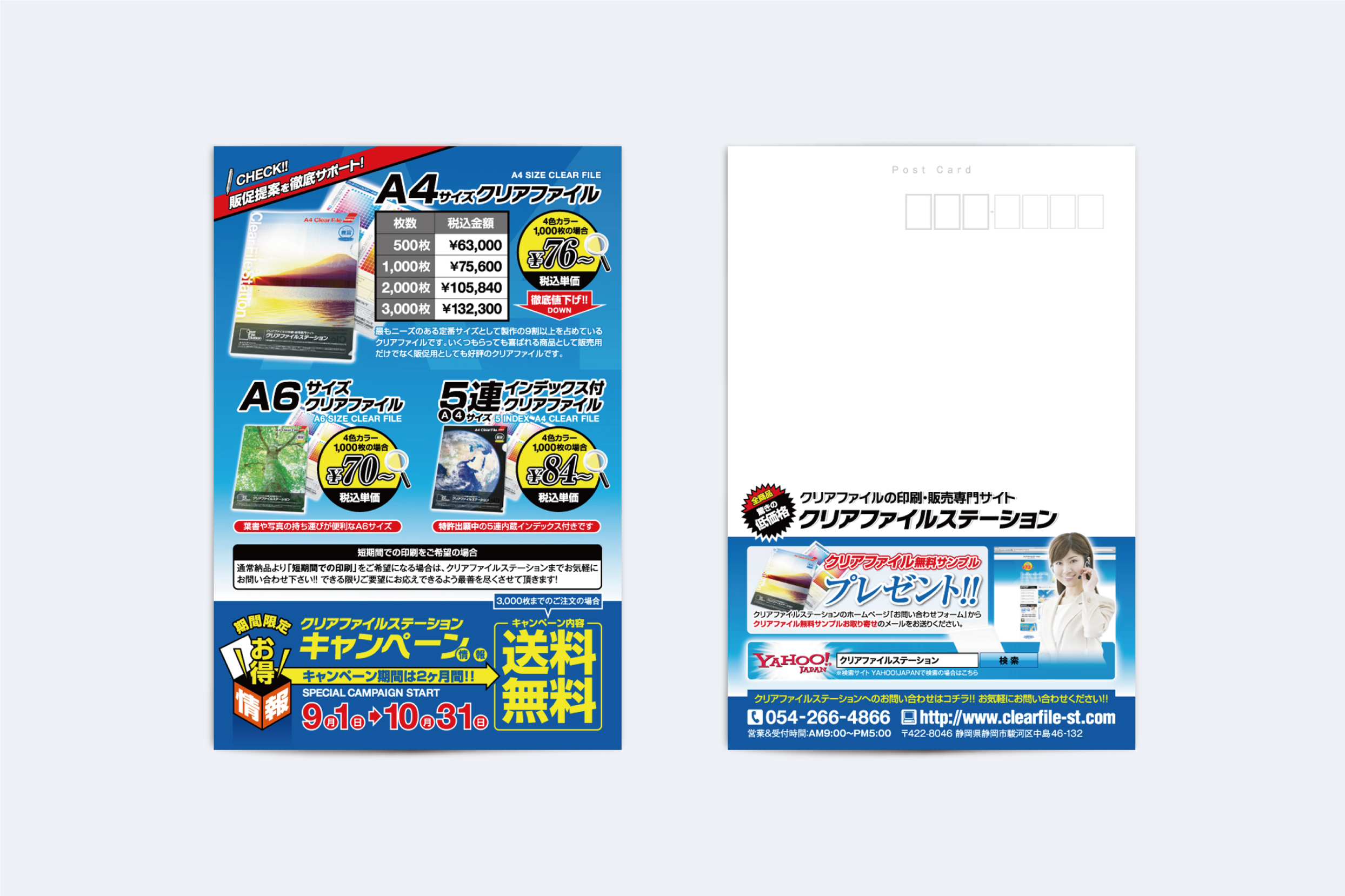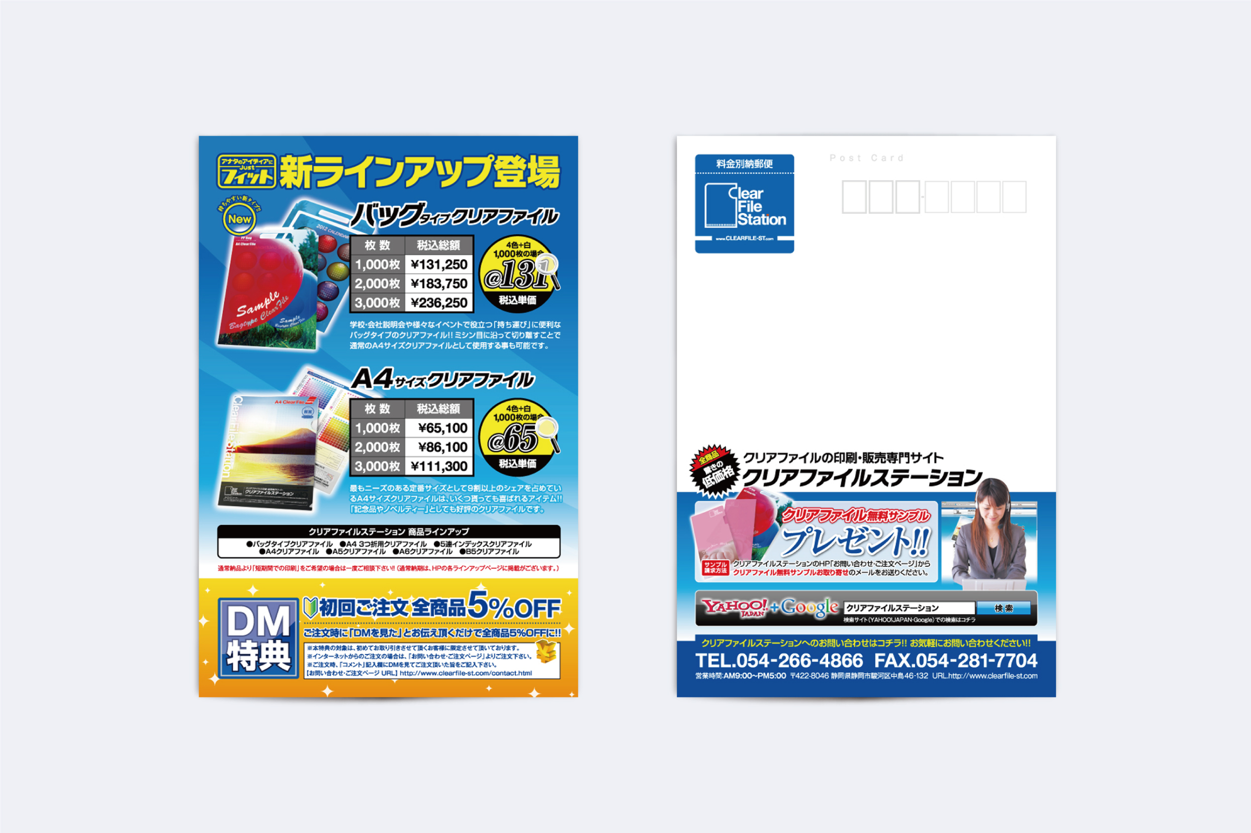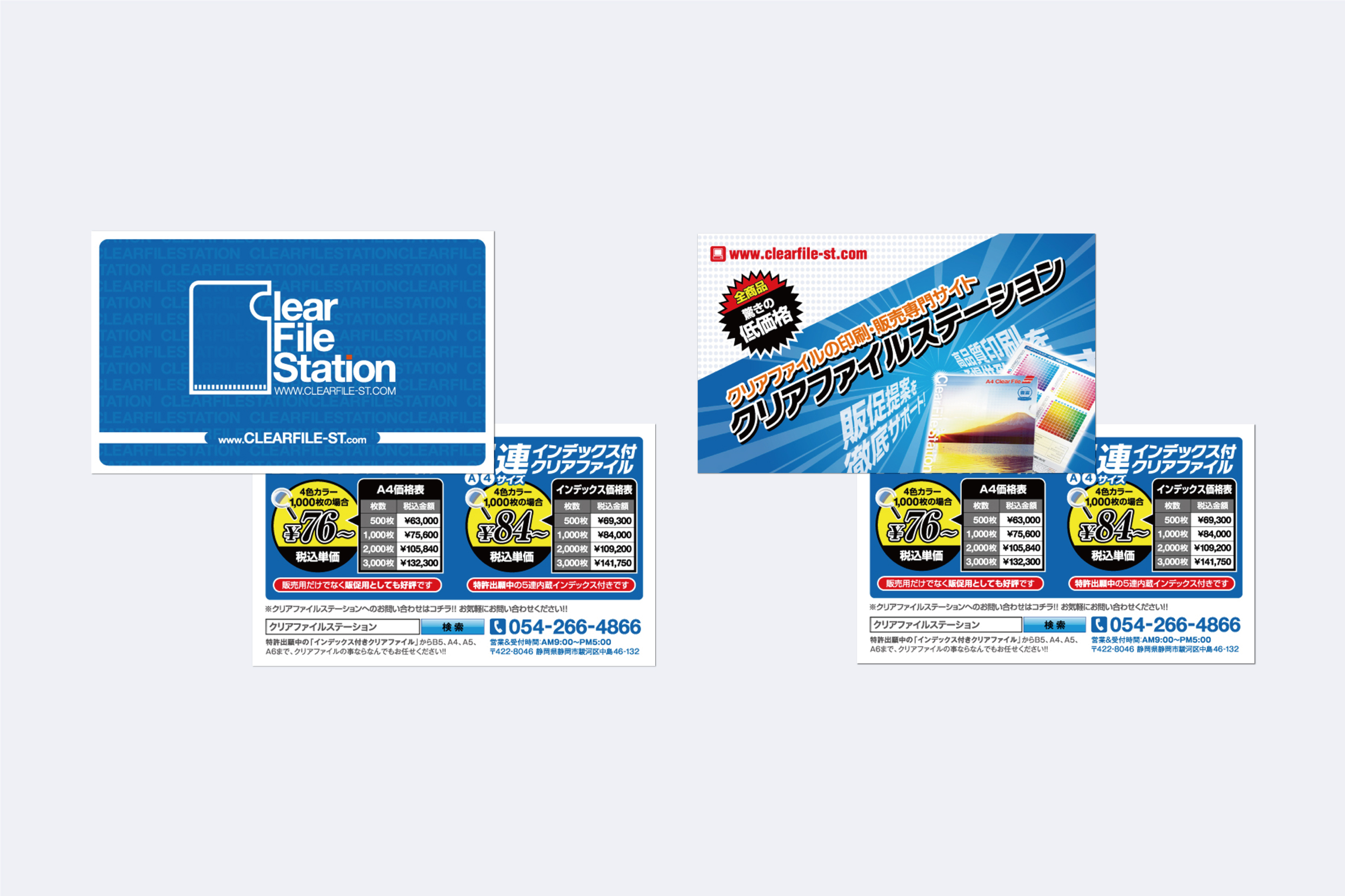 静岡市にある印刷会社 進士印刷様が運営する「クリアファイルステーション」のDM・名刺・ショップカード・サンプル用クリアファイルなどの各種アプリケーションツールの制作を担当させて頂きました。