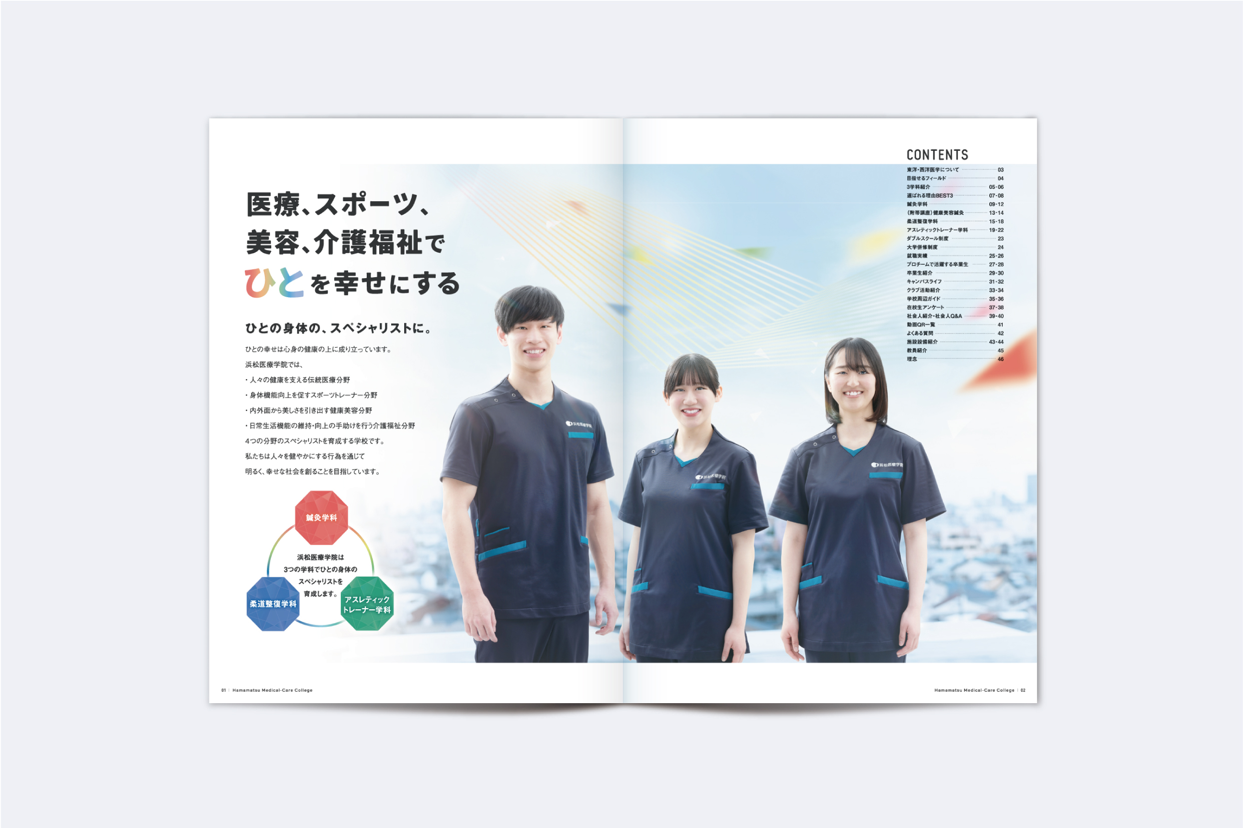 浜松医療学院様の2025年 学校案内パンフレットのアートディレクションおよびグラフィックデザインを担当しました。