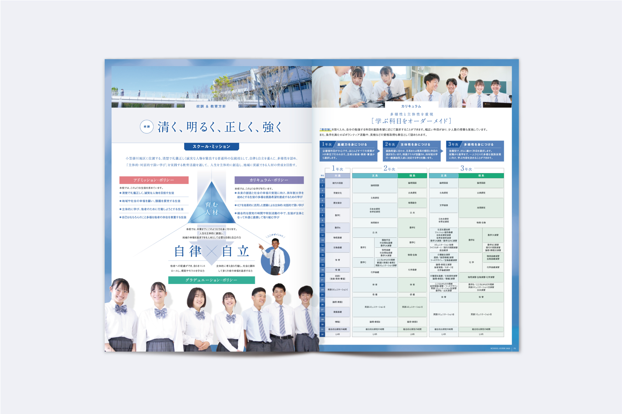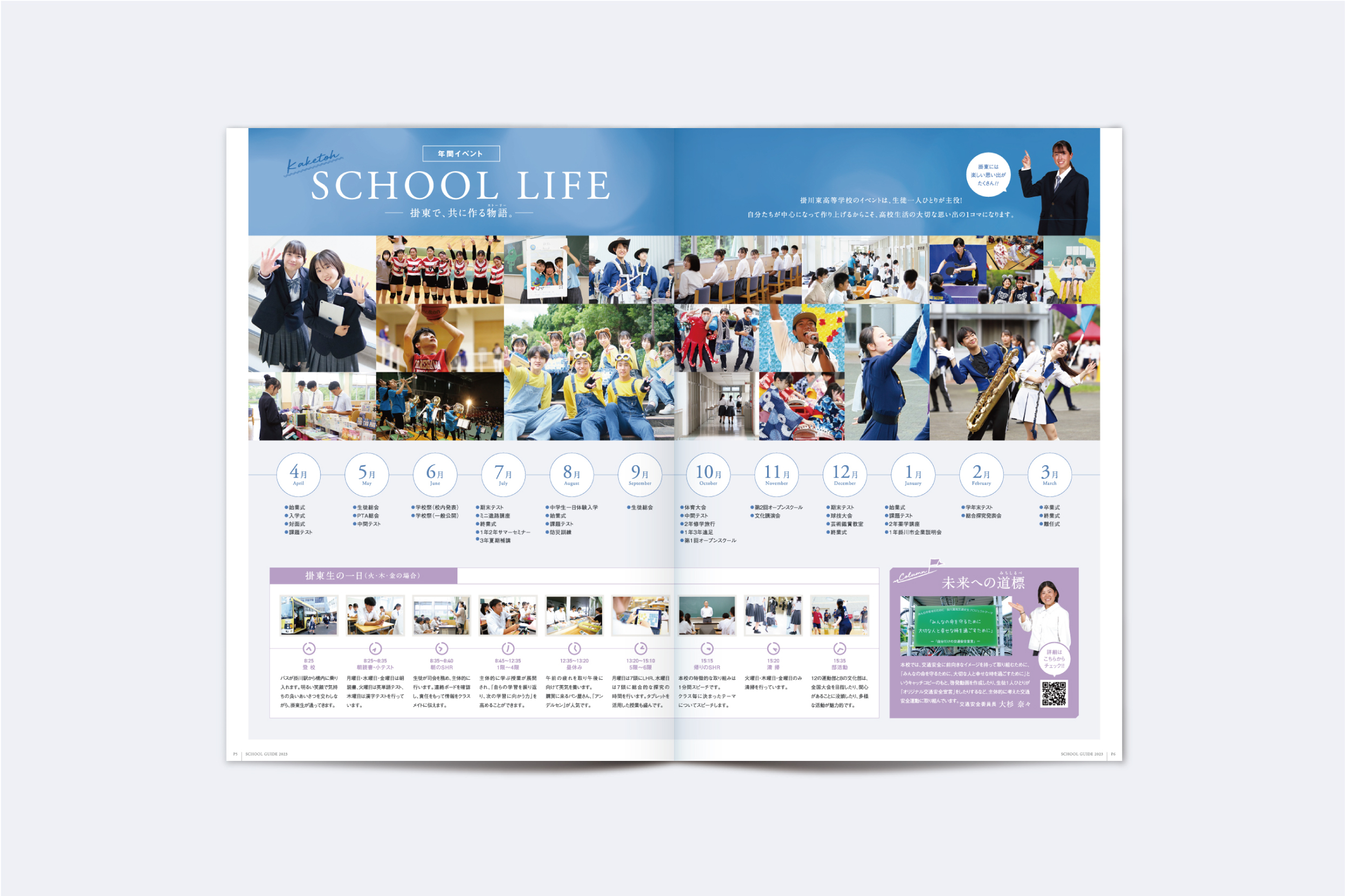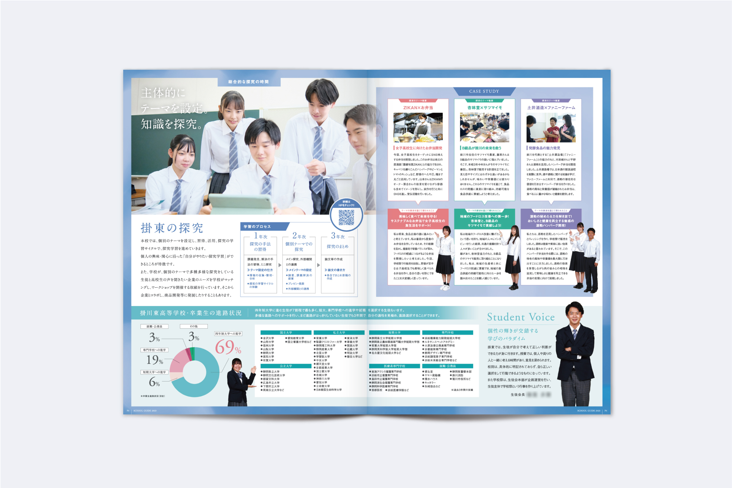 静岡県立掛川東高等学校・学校案内2023年版パンフレットのアートディレクションおよびグラフィックデザインを担当しました。