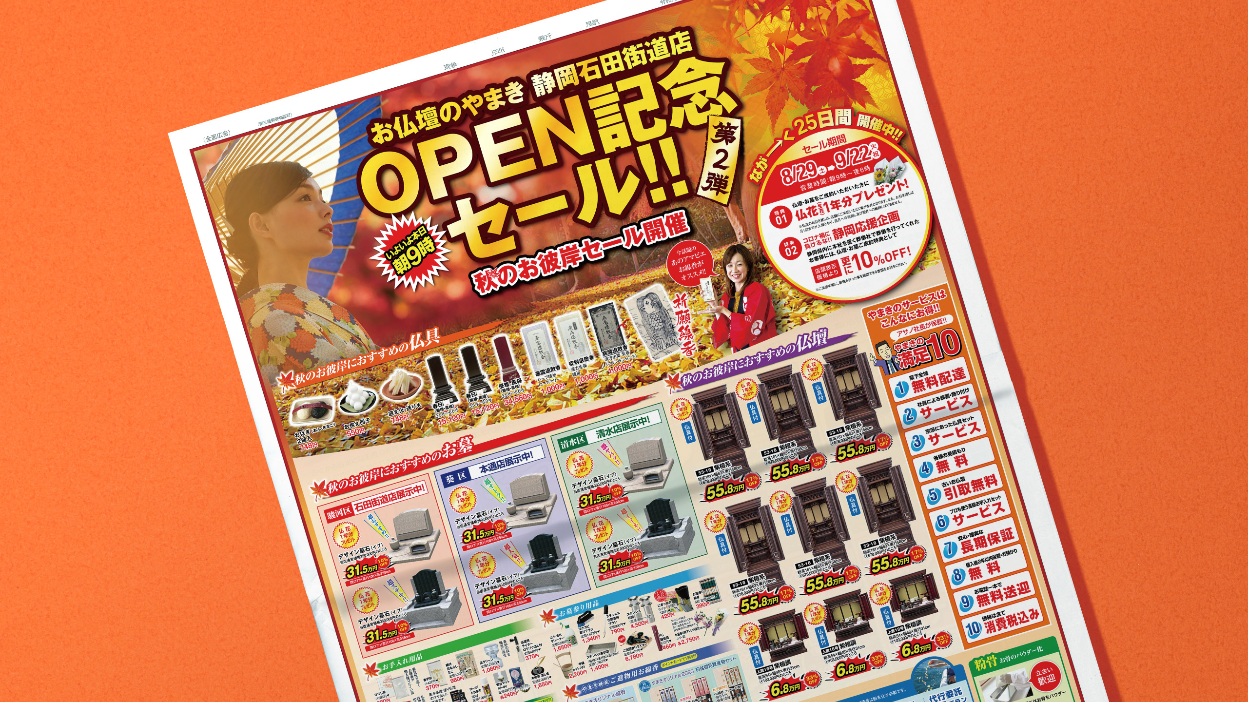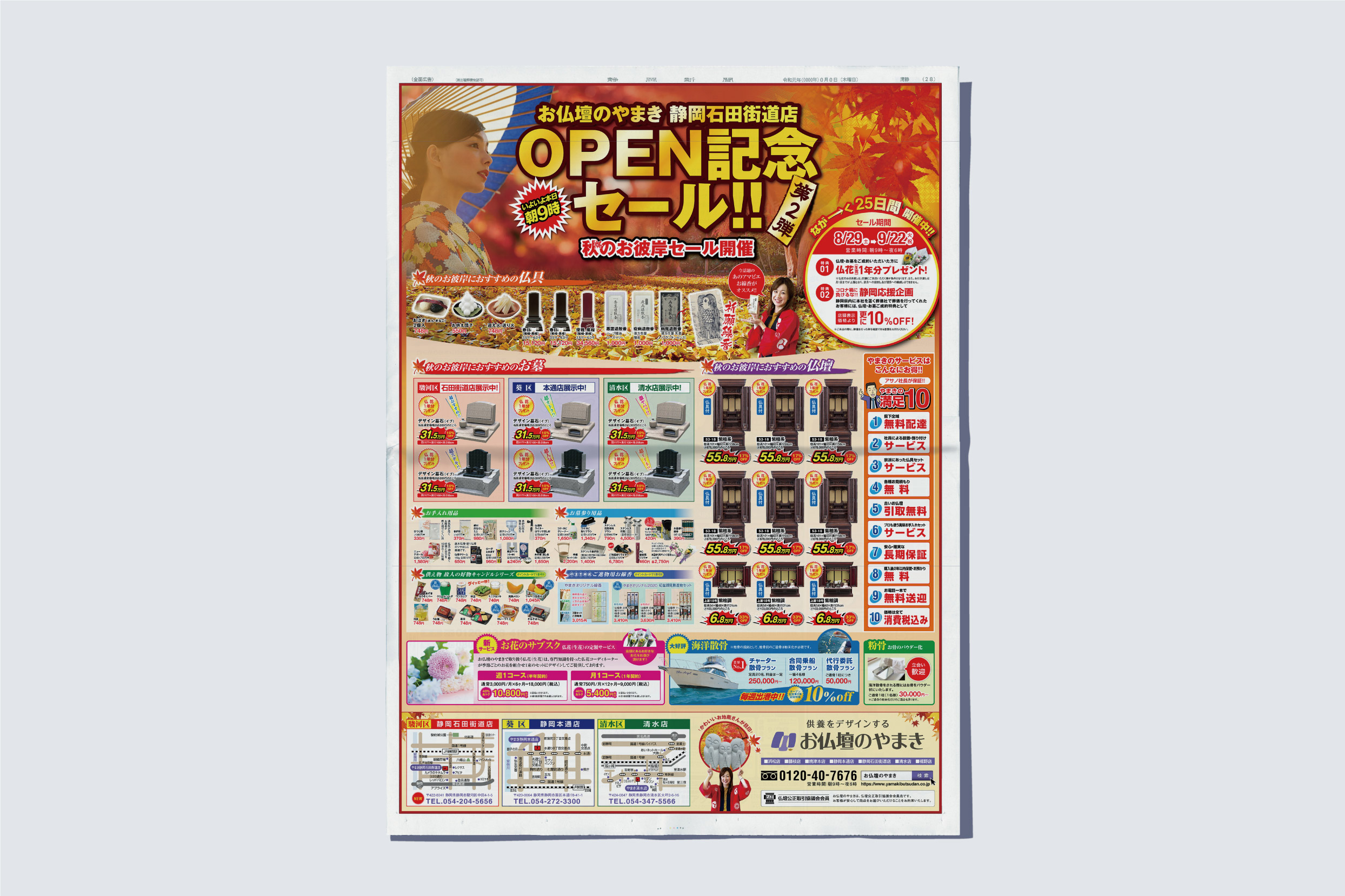 お仏壇のやまき様の静岡石田街道店OPEN記念セールの新聞広告のデザインを担当しました。