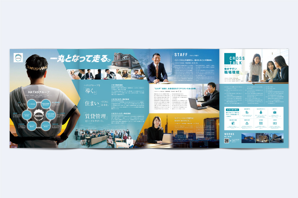 新卒採用者をターゲットにした採用案内リーフレットのアートディレクションおよびグラフィックデザインを担当しました。